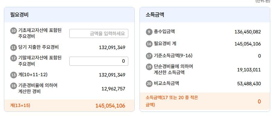 앞전에 부가세신고할때 9번 -> 총 수입금액 / 11번 -> 당기 지출 주요경비