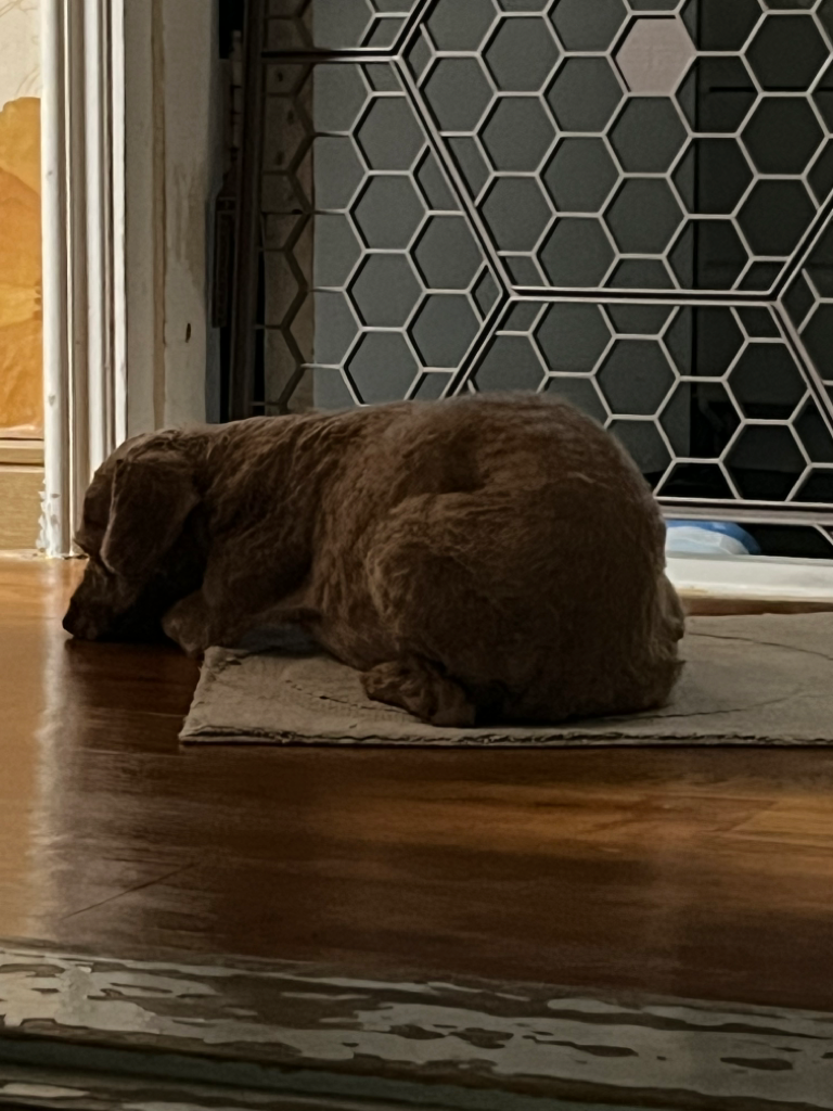 강아지가 6년 살면서 사람이랑 자다가 4일 전부터