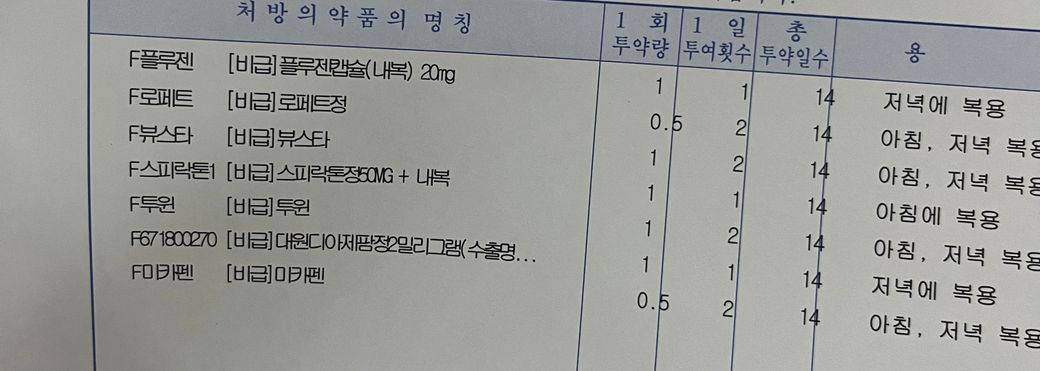 근데 처방전 약들 확인하니까 우울제 이런 비슷한 것도 있는 것 같아서요 ㅠㅠ
