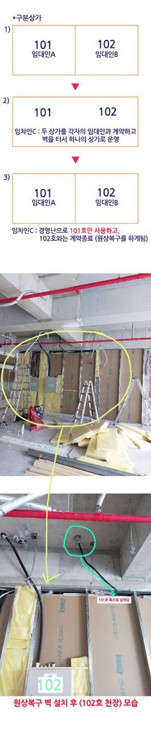 물리적으로 101호로 넘겨서 벽체가 세워졌습니다.