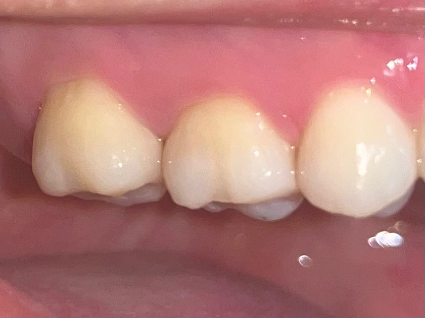 양치할 때 칫솔을 세워 앞니부분을 따로 꼼꼼하게 닦으셔야 합니다.