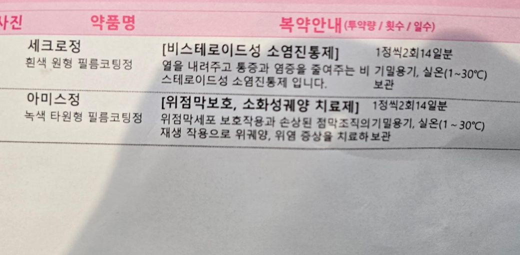추벽증후군 진단을 받아 먹고있는 약이 분홍색이고