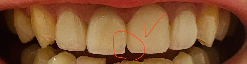 체크되어 있는 치아는 현재 씌운 임시치아이고 다른 앞니는 타 병원에서 몇년 전에 씌운 지르코니아 크라운 앞니입니다.