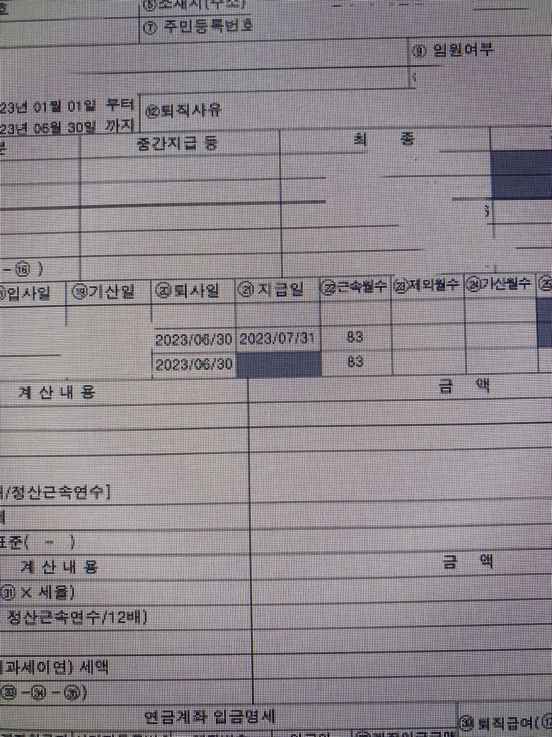 퇴직일자 궁금합니다. 사대보험 상실일자 아니고 퇴직일자 궁금합니다.