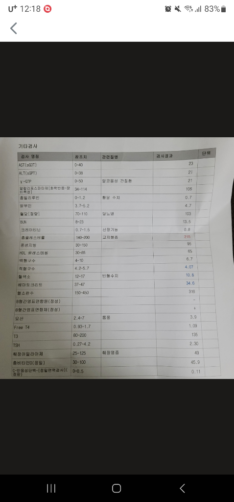 첨부해주신 자료의 경우 콜레스테롤 수치롸 빈혈수치가 이상하네요