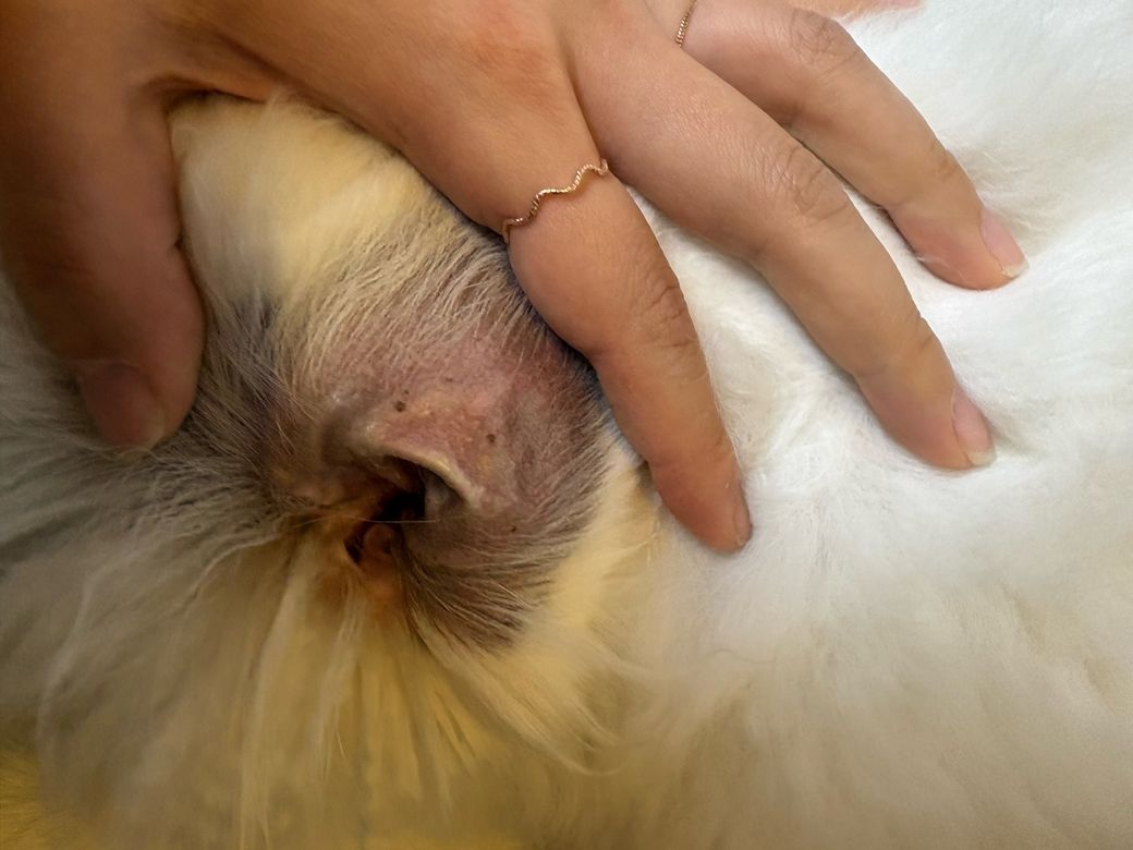 사모예드와 같은 이중모 견종은 귀 내부의 통풍이 원활하지 않아 목욕 후 습기가 제대로 제거되지 않을 경우 세균성 피부염이나 외이염이 발생할 가능성이 매우 높습니다. 6개월령의 강아지 귀에 발생한 검은 딱지와 오돌토돌한 발적은 습한 환경에서 증식한 세균이나 곰팡이균에 의한 감염 반응일 수 있으며 강하게 닦아낼 경우 피부 점막에 상처를 입혀 2차 감염을 유발할 수 있으므로 주의가 필요합니다. 식염수로 겉면을 닦는 것은 일시적인 조치일 뿐 귀 안쪽의 염증이나 근본적인 원인을 해결하기 어렵기 때문에 검이경 장비를 갖춘 병원에서 정확한 도말 검사를 통해 원인균을 파악하고 적절한 연고나 내복약을 처방받는 것이 가장 효율적인 해결책입니다. 중성화하지 않은 어린 개체는 면역 체계가 형성되는 과정이므로 증상을 방치하여 만성적인 피부 질환으로 진행되지 않도록 조기에 전문적인 진단을 받는 것을 권장합니다.
