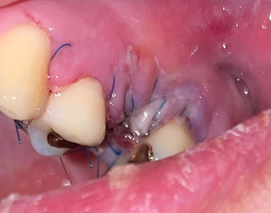 어제 상악동 거상술을 받았습니다 뼈 이식 까지 해였는데 실밥이 혀를 너무 찌르고 쓸려서 혀가 너무 아파서 수술부위 사진을 찍어보니 잇몸이 터진듯한 하얀 무언가도 보이고 잘못 ㄷ된건가요?