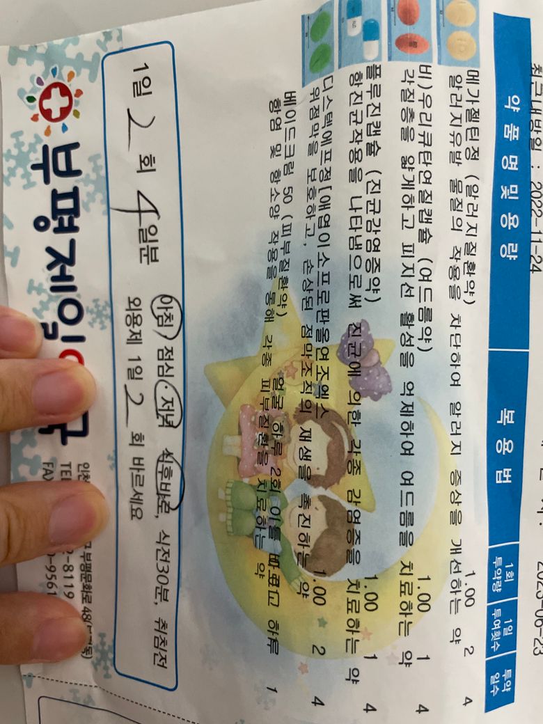 피부과에서 피부염 및 여드름이라고 약을받아서 복용중인데 아침/저녁으로 복용중이에요