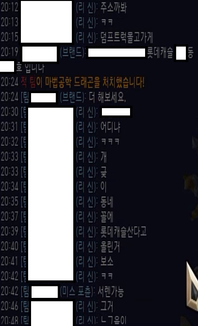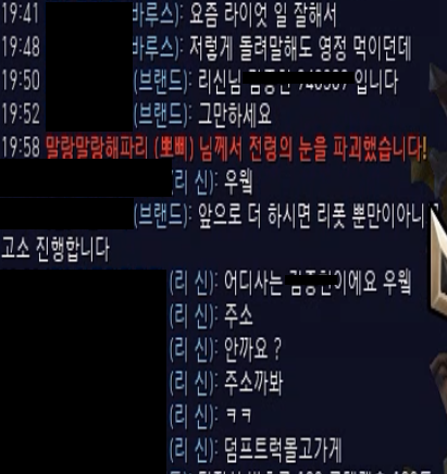 게임 채팅창 시스템상 볼수 없어 16~20분 간의 채팅내역입니다.