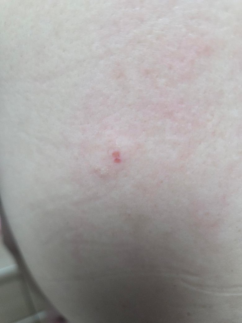 빨갛게 된건 긁어서 그렇고 뭔가 툭 튀어나온거 같은데 계속 가렵다고 하시네요