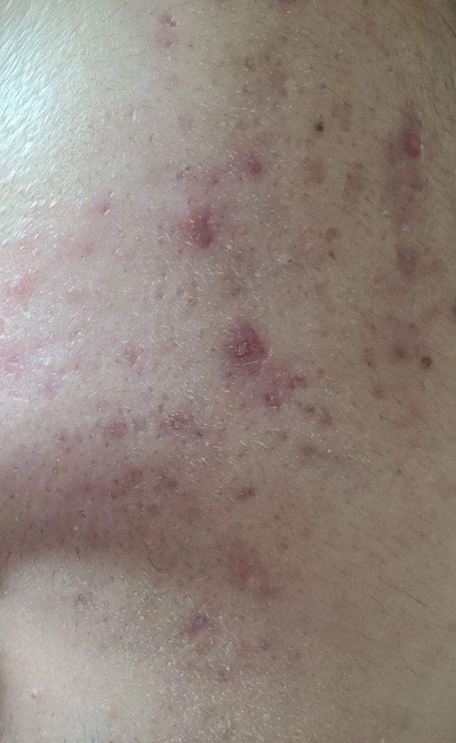 화농성 여드름으로 보이며 자가치료보다는 피부과에서 레이저나 염증주사 등의 시술로 관리하시는게 더 효과적이긴 합니다. 여드름만이 아니라 홍반과 흉터도 많은데 이도 보통 피부과에서 관리받습니다. 감사합니다