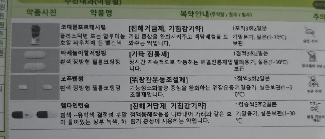 동생이 원레 먹던 약인데 감기약이랑 먹어도 되나요?