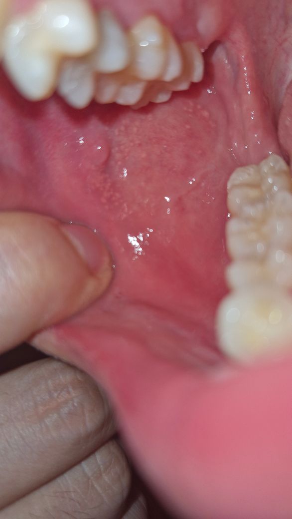 사진에서 보이는 입안의 볼쪽에 약간 노란빛 돌기가 오돌토돌낫습니다. 혹시나 헤르페스나 성병일까싶어 검사한결과 std12종은 모두 음성이었습니다.