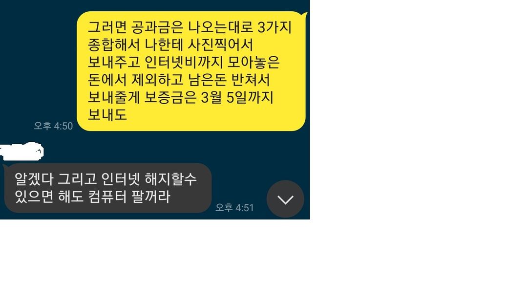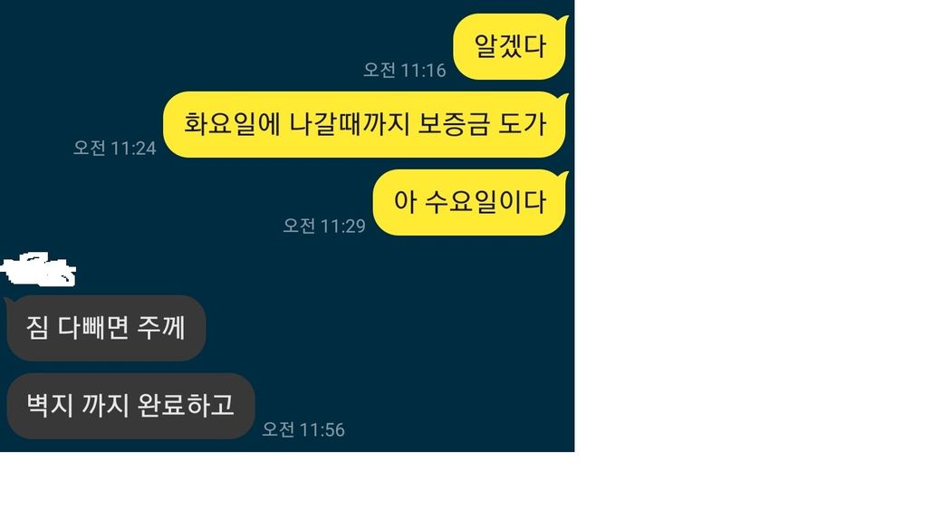 원래는 방을 정리하고 나가는 2월 24일에 보증금을 지급해달라 하였으나 사정상 어려워 3월 초까지 지급하겠다고 해서