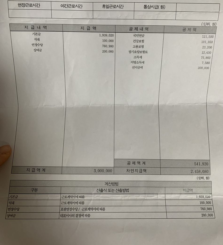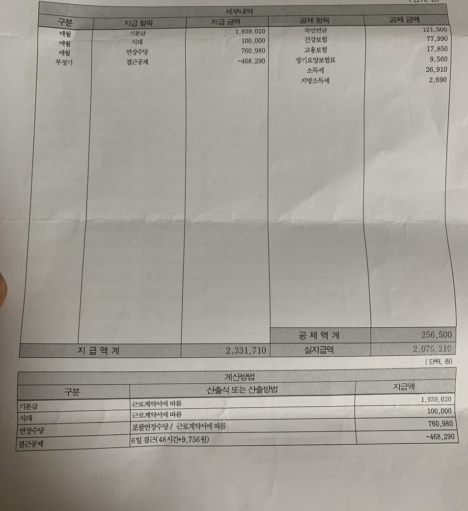 3월은 코로나로 근무 빠진거 급여에서 제외되었습니다