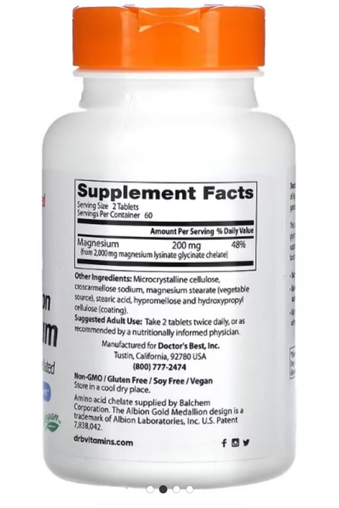 3.닥터베스트 마그네슘 킬레이트 고흡수 100mg : 저녁에 1정