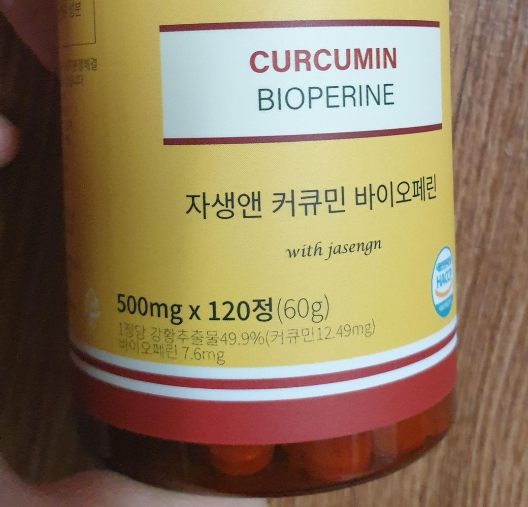 2.자생앤 커큐민 바이오페린 500mg : 낮에 1정