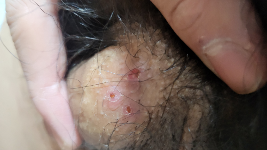 병변으로 보아 과도하게 발모를 한 뒤에 나타난 병변으로 보이며 우선 해당 부위에 자극을 주지 않은상태로 3-4일정도 경과관찰을 해보시는것이 좋겠습니다.