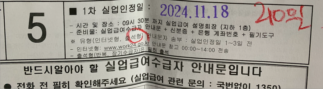 고용센터에 실업급여 처음 신청하러 갔었을때 안내 직원분이 아래 사진의 종이를 주면서 2024 11.18일날