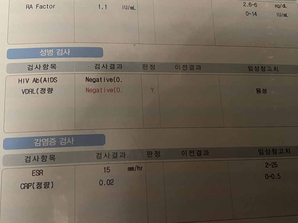 매독정상이라는데 왜 판정엔 Y라고써져있는거에요? 앞쪽 종합의견에도 정상이라고 나와있어요 Y는 뮌가요 ,,,,,,,,,