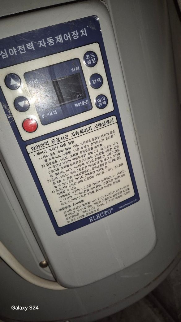 오후 11시가 지나도록 작동되지않습니다...콘센트는 사진보면 아시듯 전선이 어디로 간지도 모르게 전선감추는 마감을 해놔서 유무를 모르고 맨 아래 사진 전기온돌용 온도조절장치 이거는 11시되니까 작동하더라구요 온수기는 왜그럴까요...ㅠ 춥네요..많이...