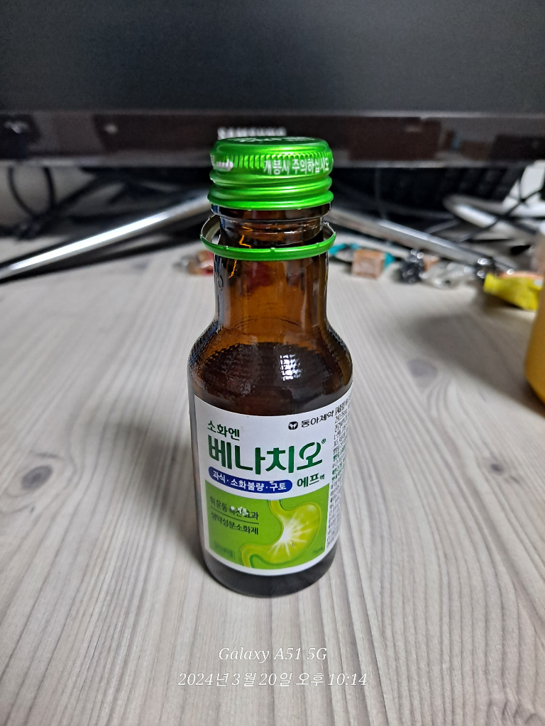 밤 9시 58분에 부득이하게 베나치오 소화제 1병을