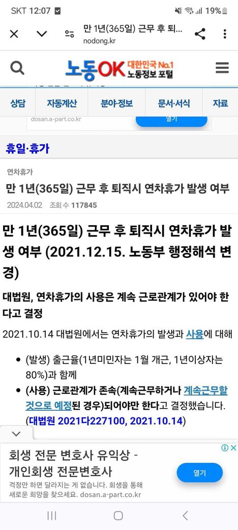 이분의 목적은 9/19일에 15개의 연차가 새로 생기기 때문에 , 그때까지 버티고 15개의 연차를 받고 퇴사하겠다는 의사이십니다.