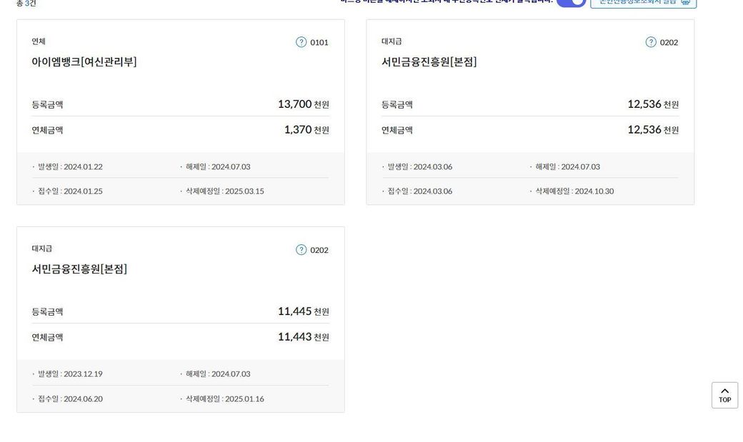 확정받고 신용정보원에 공공정보가 올라갔어요