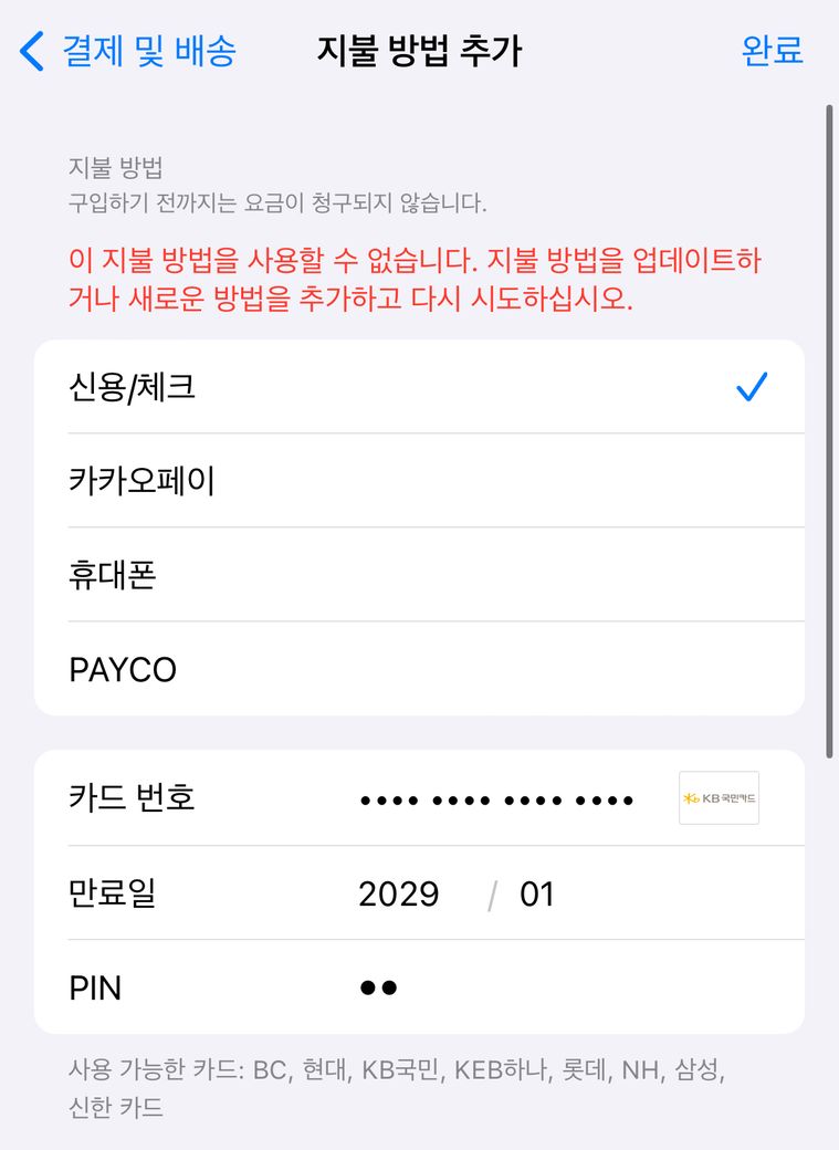 카드사가 국민카드로 설정 돼 있는 것으로 보입니다