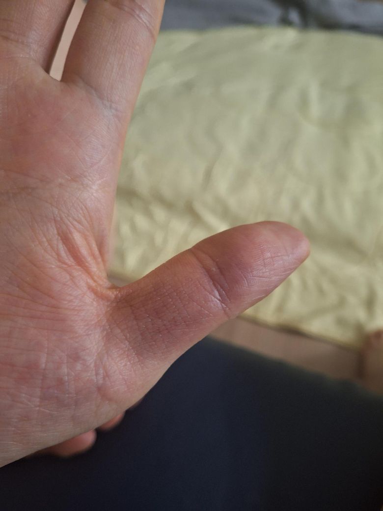 엄지손가락이 갑자가 아프면서 피멍이 들었습니다