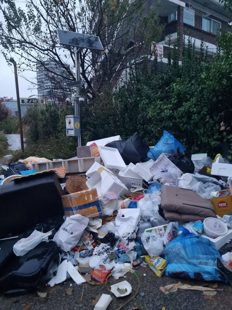 도심을 지나다보며, 맨날 느끼는 것인데, 한복판 중심거리에 가정집 쓰레기가 산더미 같이 쌓여 있는데, 한달도 넘는 것 같네요. 버리는 사람은 무슨 심뽀이고, 치우지도 않는 지방자치단체는 방관하는 것일까요? 주변에 CCTV도 있는데, 조사라도 해야지요