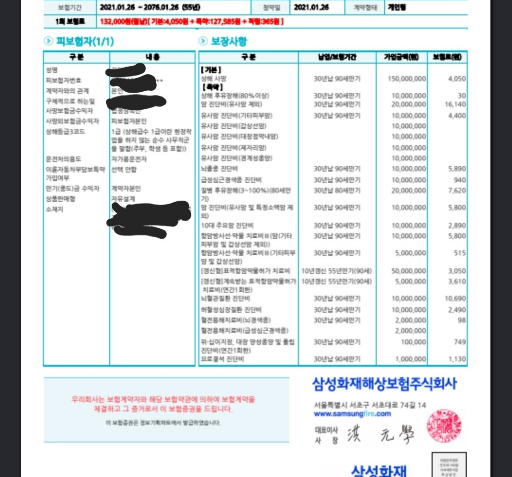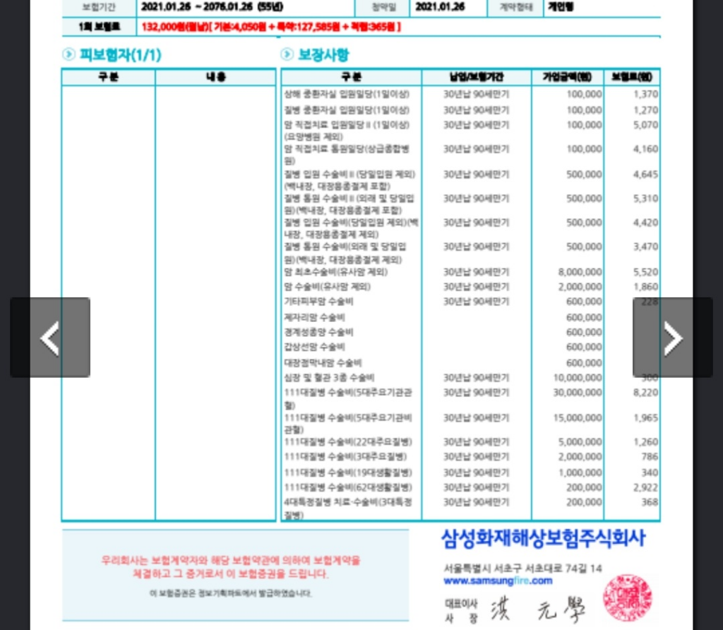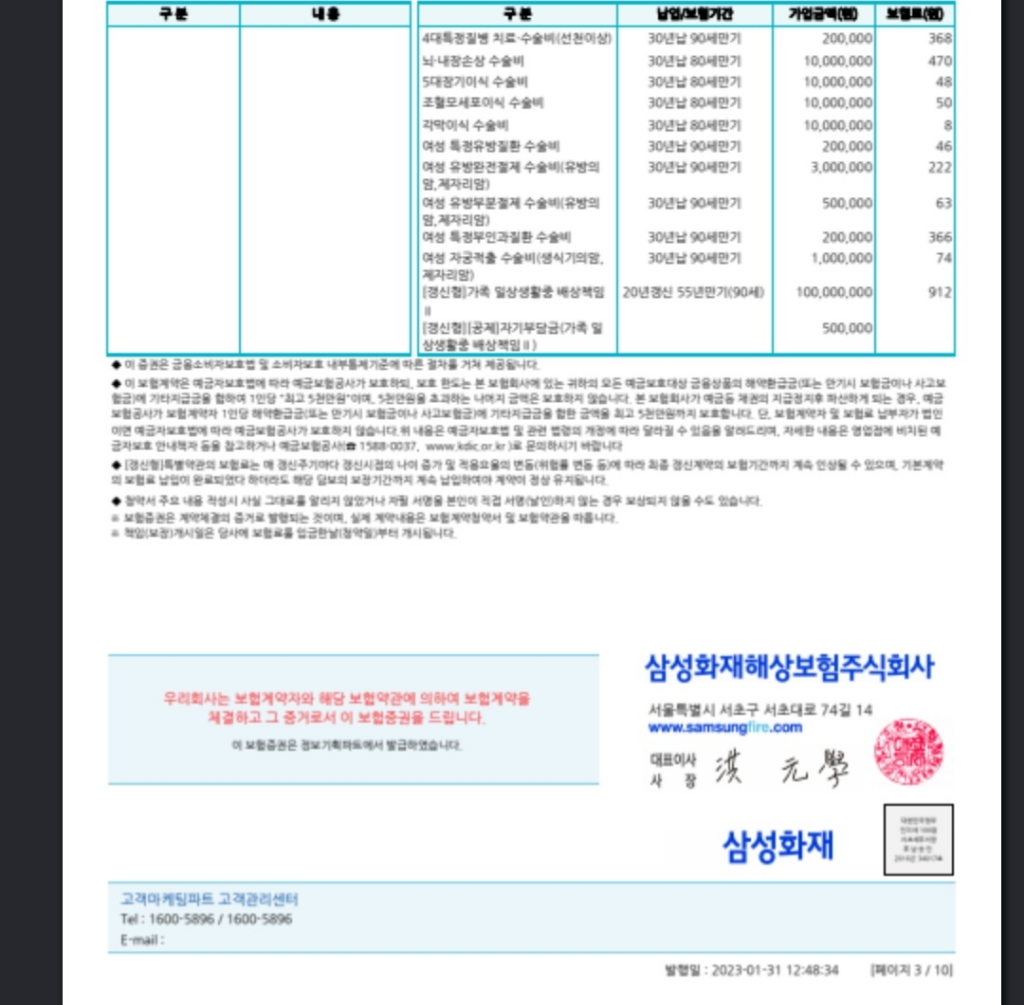3대진단과 수술비 입원비도 적절하게 가입이 되었습니다.