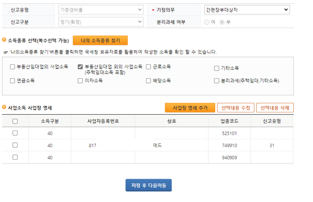 종합소득세는 주민등록번호 단위로 신고하고 납부하는 세금입니다. 공동사업자가 아닌 이상 추계 신고시 적용되는 기준경비율은 모든 사업소득에 동시에 적용됩니다. 따라서 단순경비율과 기준경비율이 혼합되어 적용되지 않습니다.