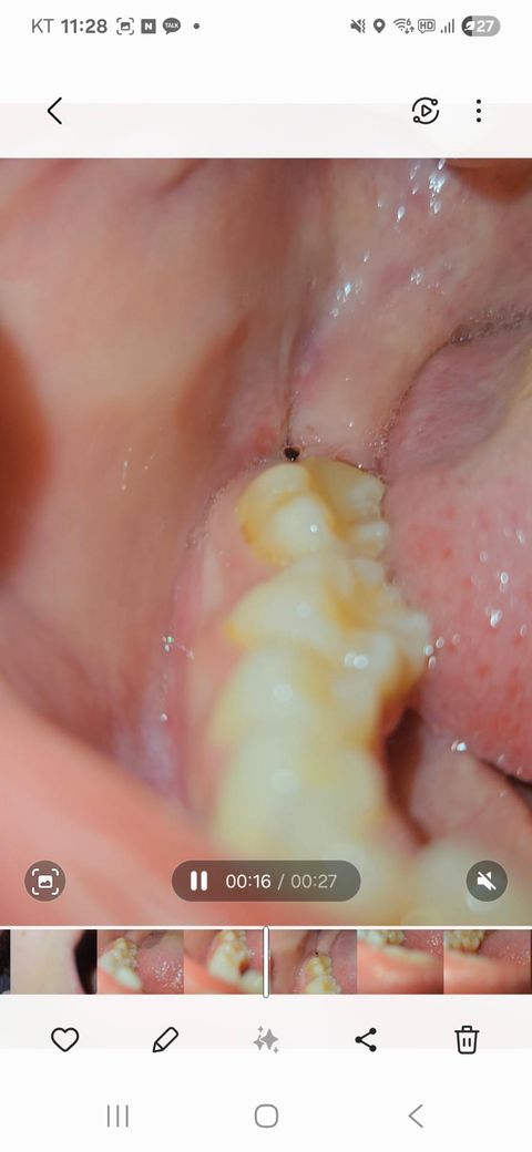 오늘 실밥 제거 했는데 입 벌려보니 무슨 시꺼먼게 보여서 봤는데.. 이게 도저히 구멍이 맞는지... 검정색 실로 꼬맷는데 저는 아무리봐도 실밥 같거든요?... 이게 구멍인가요?.. 너무 까만데... 진짜 뭐 붙어있는거처럼 까만데요... 반대쪽은 매복에 실밥 풀고 구멍이 없었거든요.. 원래 사랑니 뽑고 이렇게 구멍이 뻥 뚫리나요..ㅠㅠㅠㅠㅠ 실밥 제가하는것도 하나도 안아팠고요ㅠㅠ 진짜 몇초만에 끝났어요.. 실밥을 다 제거를 안해주신건가요?.. 과정이 그럴수가 있나요?... 제가 암만 후레시를 비춰봐도 모르겟어요....ㅠㅠㅠ 이거 아물면 어떻게 되는거죠..