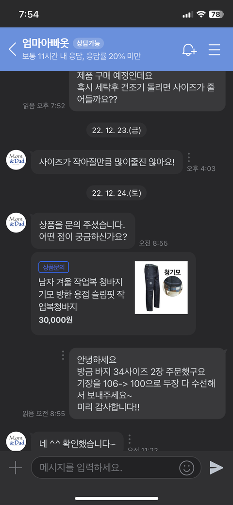 그런데 세탁/건조기 사용후 바지가 7센치가량 줄어들었고 저는 판매자에게 변형이 거의 없다했는데 7센치나 줄었다 교환이나 환불을 해달라 하였으나 판매자는 사용자의 건조기 사용 부주의라며 거부하였습니다