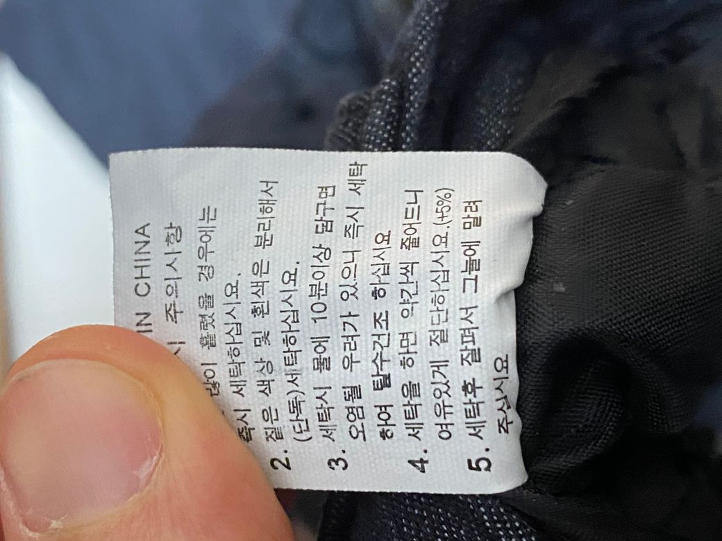 그리고 나중에 알게된 사실인데 제품 택에 스판제품 특성상 세탁후 기장이 줄어들수 있으니 첫세탁후 기장수선하라는 문구와 바지 안쪽 라벨에는 세탁하면 기장이 줄어드니 여유롭게 (+5%) 하여 기장을 수선을 하라는 문구가 있었습니다