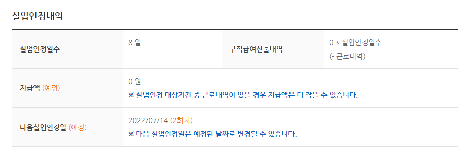 ☞어느 기간에 실업급여를 신청했는지에 따라 다를 수 있겠지만, 실업급여가 0원이라면 관할 고용센터에 문의해보시길 바랍니다.