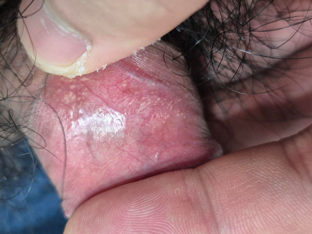 육안으로 관찰되는 병변이 성병일 가능성은 낮아보입니다.