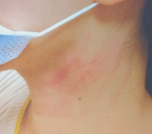 특별한 외상이 없었다면 알레르기 병변으로도 볼 수 있을것 같습니다.