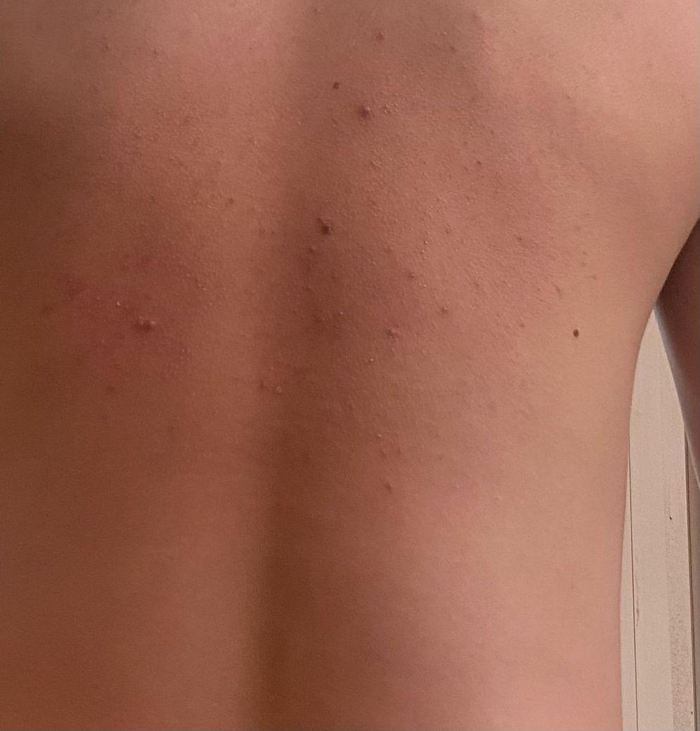 질문하신 내용에 대하여 아래와 같이 답변 드립니다.사진을 통해 보았을 대 등의 화농성 여드름이 있으신 것으로 보입니다. 스트레스, 불면증, 탄수화물 위주의 식단, 흡연 모두 해당 증상에 영향을 줄 수 있는 요소들입니다. 생활 습관 교정을 하시고 피부과에 방문하시어 약물 치료를 받으시길 권고드립니다.