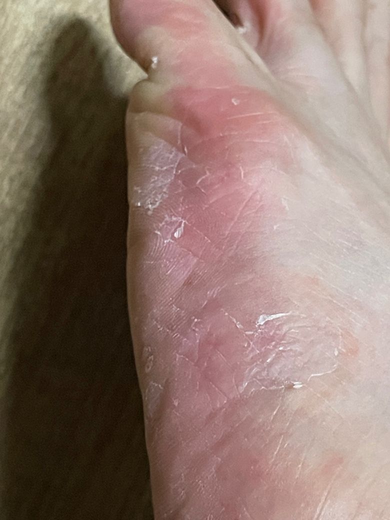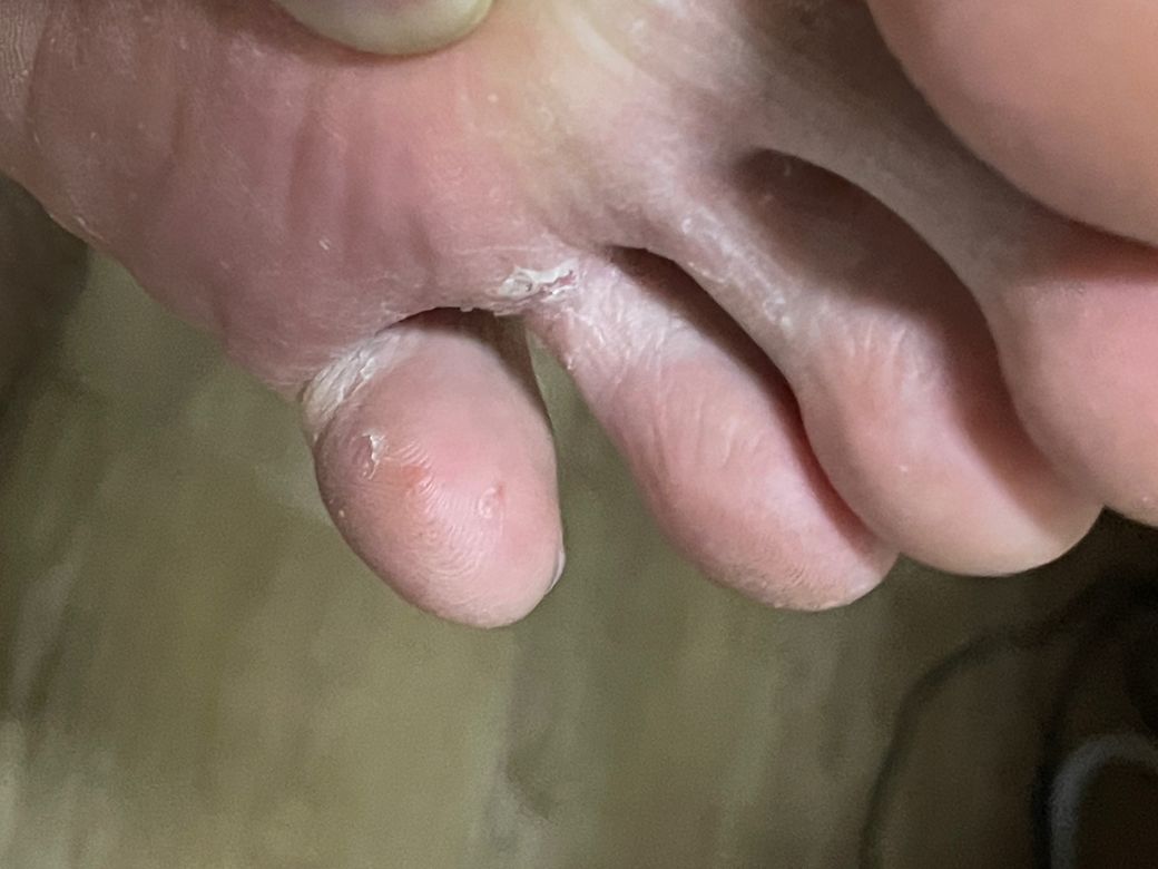 전반적으로 해당 발(왼발)의 피부가 오른발에 비해 거칠고 하얗게 잘일어나잇으며 일부 발가락사이에 피부가 잘 벗겨집니다. 그리고 아주 가끔 왼발 발가락 관절 부분 등이 저리기도해요