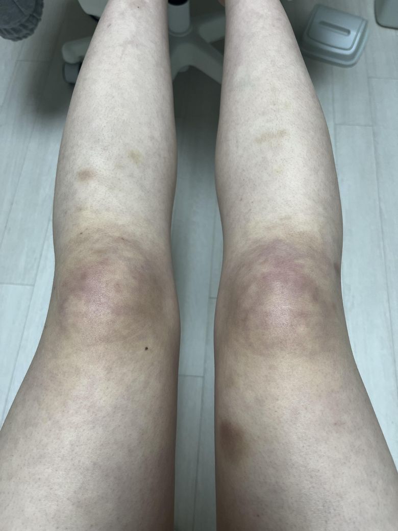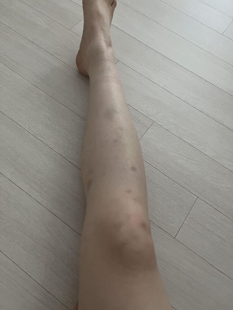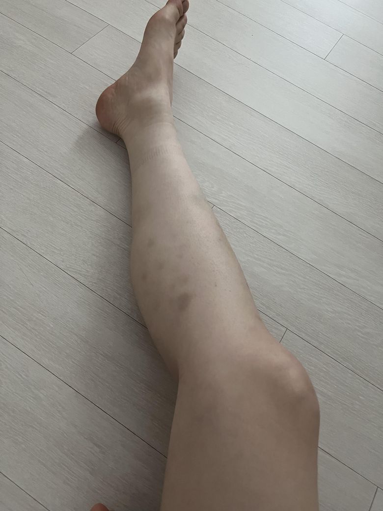 종아리 붓기때메 손으로 좀 주물렀는데 저렇게 멍이 들기도 하고..