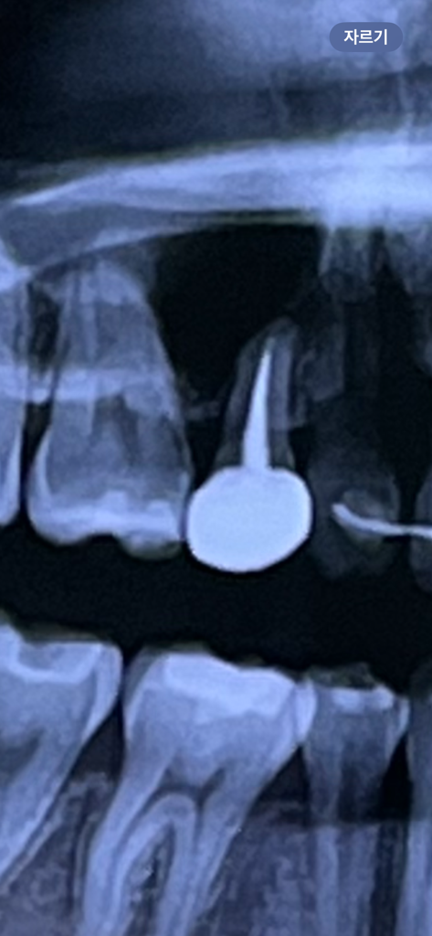 파노라마 방사선 사진이고, 신경치료 전/후 비교사진이 없어 애매하긴 하나 현재 사진상으로는 좋지 않아보입니다. 어느정도 치아 뿌리끝 염증이 진행되어 잇몸뼈가 녹은 상태로 보여집니다