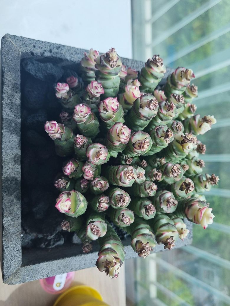 처음의 분홍빛은 다육 식물의 스트레스 색(강한 빛·건조·저온 등으로 나타나는 색)일 수 있고, 말씀하신 것처럼 점점 옅어지며 하얗게 보이면 대체로 광량 변화나 과습, 혹은 너무 급한 환경 변화가 원인인 경우가 많습니다.