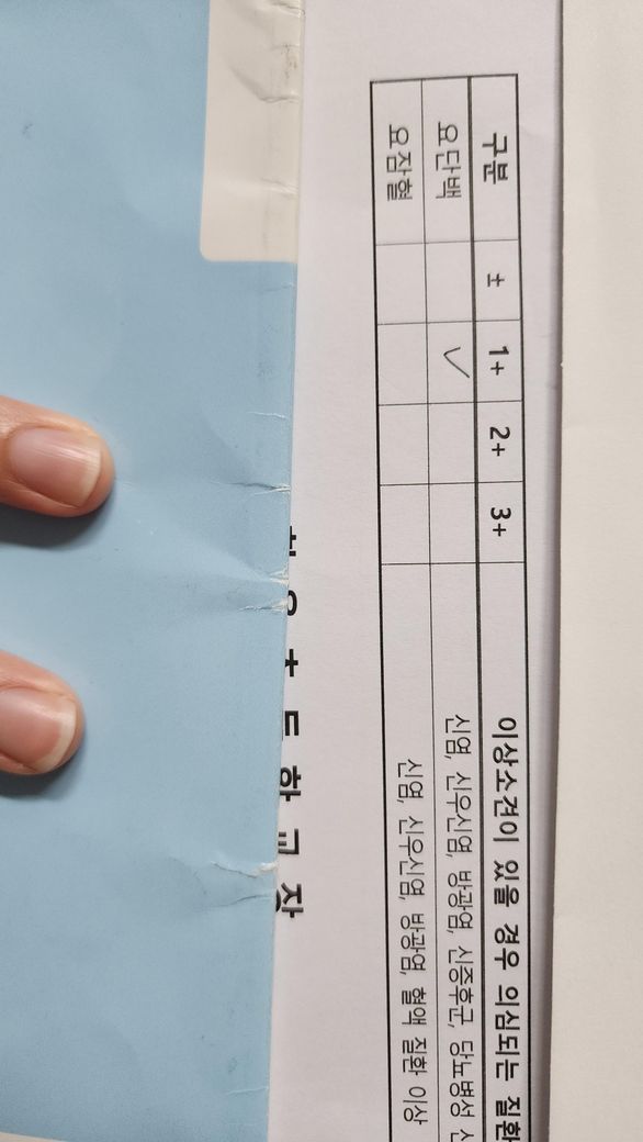 아이가 소변검사한 종이를들고왔는데