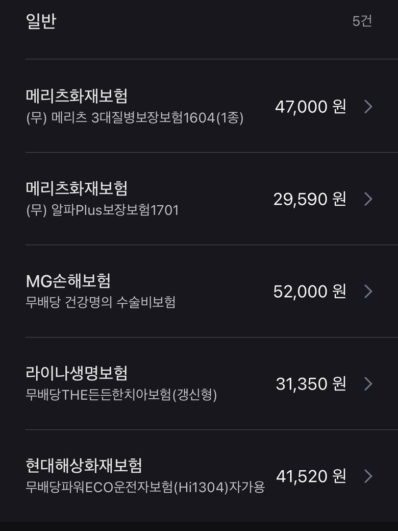 어머니께서 가입하라고 정해주신 보험들