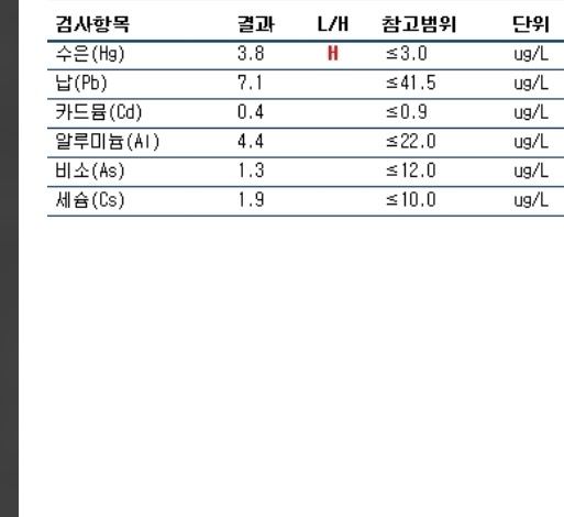 임신 8주차 입니다 중금속 검사를 하엿는데.