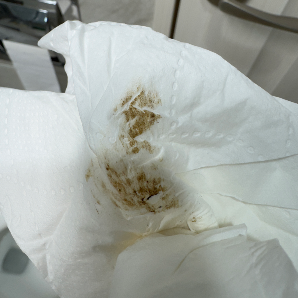 사진으로 볼 때는 흑변이라 보이지 않는데, 만약 짜장 색의 아주 검은 변이 배설된 경우엔 상부위장관 출혈을 의심케 합니다. 이 경우 속쓰림, 명치 통증, 발열 등의 반응이 나타날 수 있으므로 동반된 증상이 있다면 병원을 방문하시기 바랍니다.