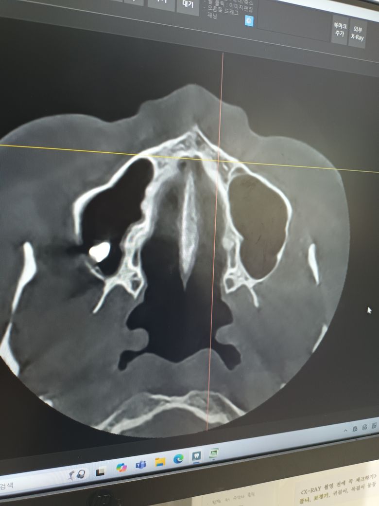 뼈라고 하기에는 다른곳과 비교했을때 임플란트처럼 너무 하얗고 정확히 뭔지 모르겠지만 상악동 안으로 들어가있다면 수술이 필요할것 같다고 하시더리고요.