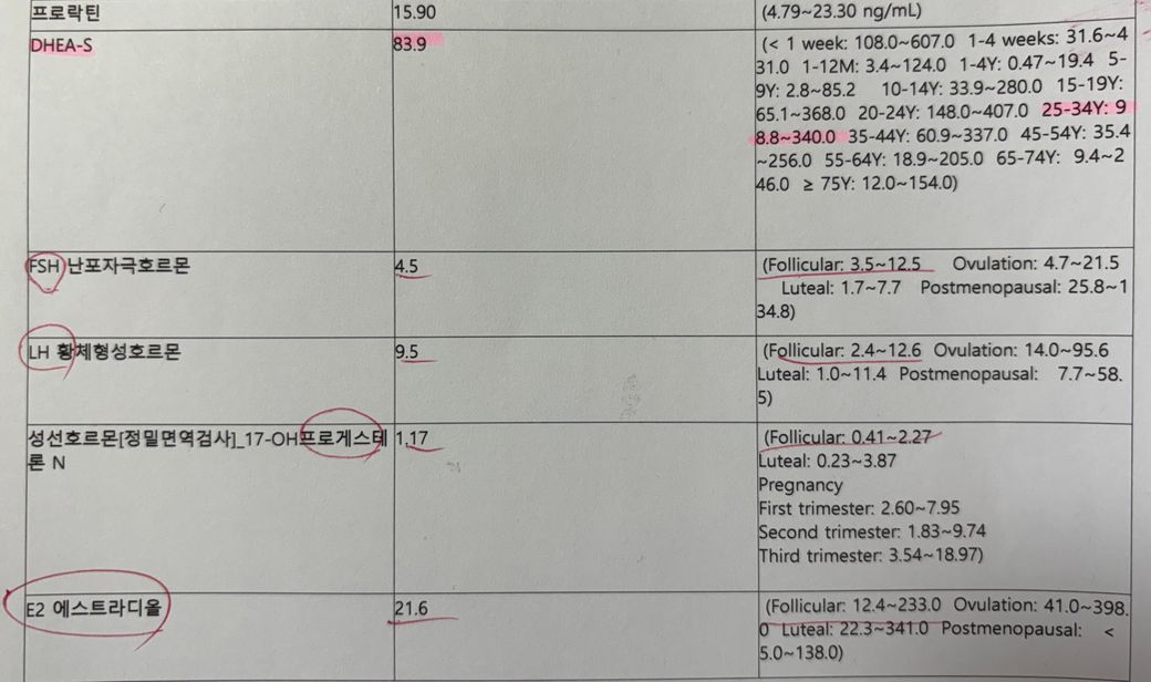 여성호르몬 피검사 수치 결과해석 부탁드립니다!